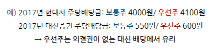 우선주는 의결권이 없는 대신 보통주보다 배당금이 더 높습니다