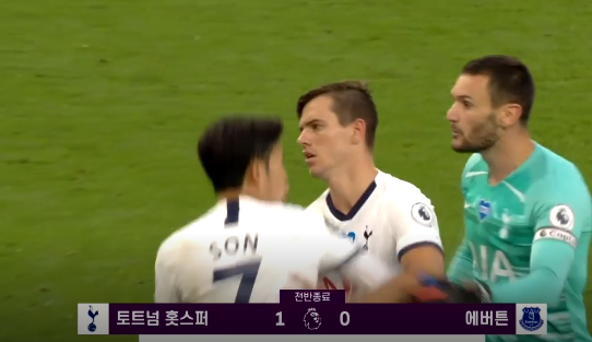 그런데 전반전 종료 휘슬이 울리자 요리스가 손흥민에게 달려가 무언가를 따졌고,
