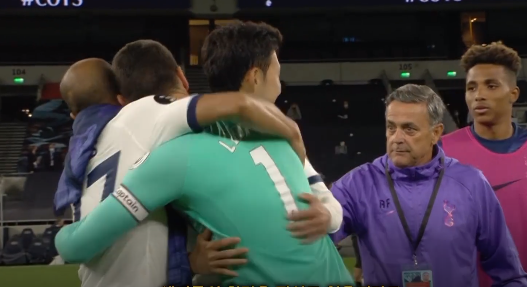 후반전 출격을 앞두고 손흥민과 요리스는 서로 포옹하며 쌓였던 앙금을 풀었고,